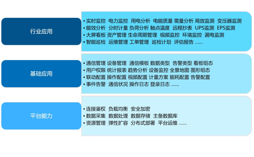智慧能源物联网系统平台可针对其行业特性细分出不同的应用子系统,同时配套有对应的硬件产品,为用户提供完整的应用级系统解决方案。