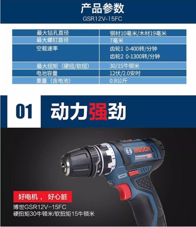 品牌:Bosch/博世 型号:GSR12V-15FC有 无力矩控制:有